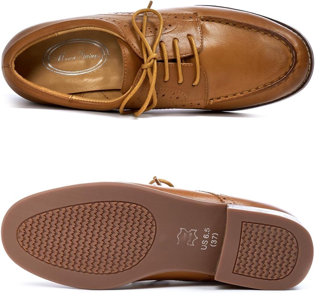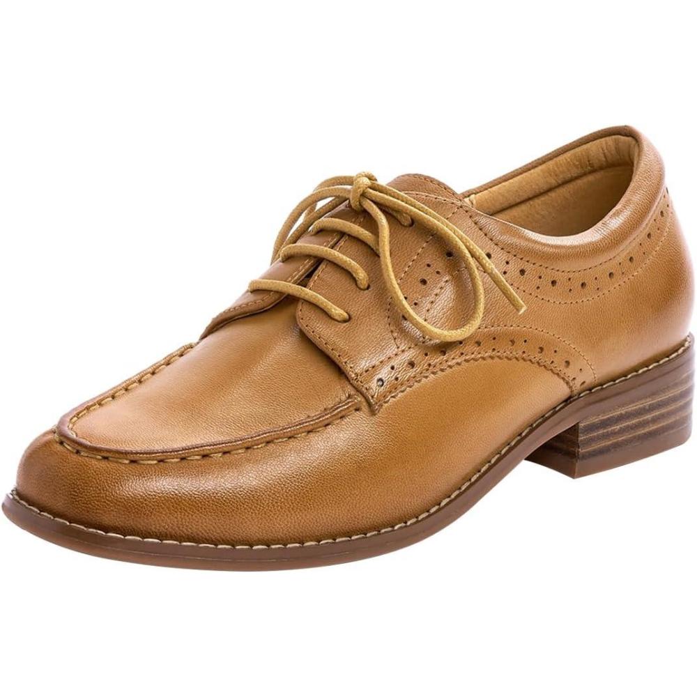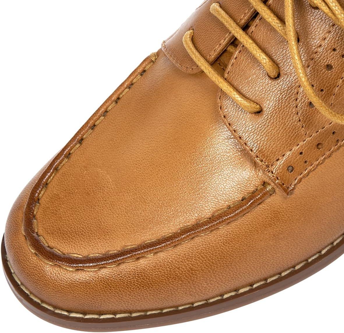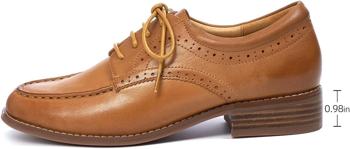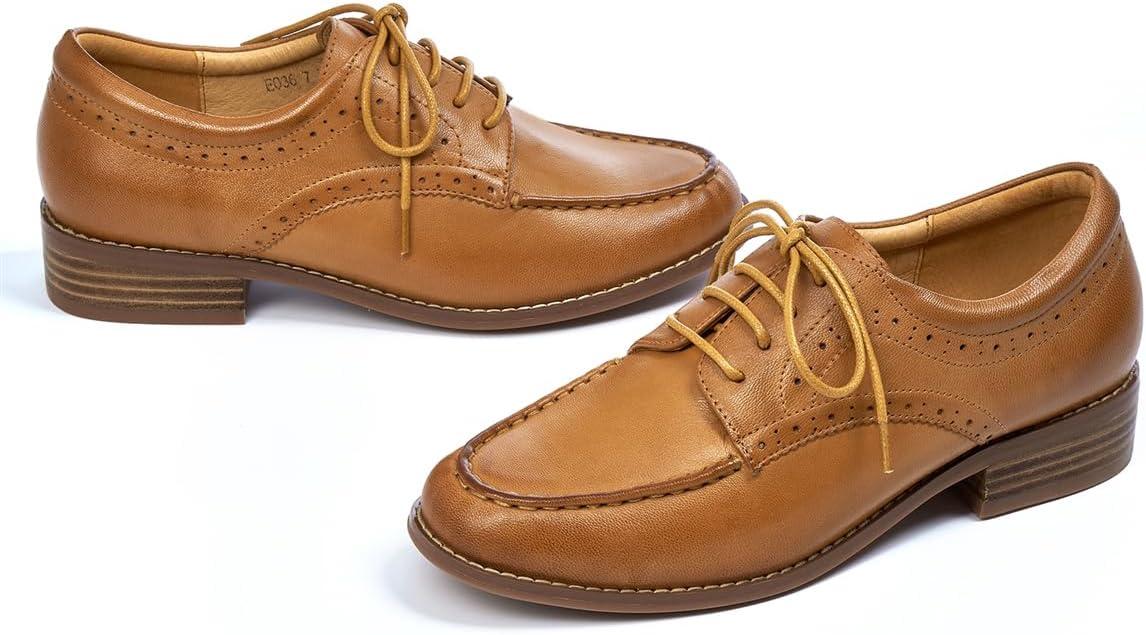 Mona flying Women’s Classic Leather Derby Oxfords Round Toe Lace up Flat Office Work Shoes for Ladies(Tan)