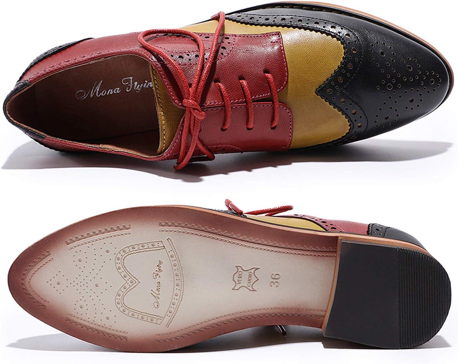 imageMona flying Womens Comfortable Multicolored Wingtip Oxfords Brogue Laceup Leather Shoes for Womens LadiesBrownyellowgreen