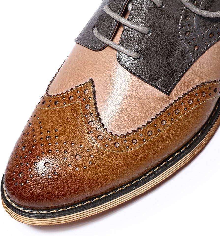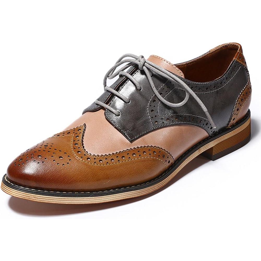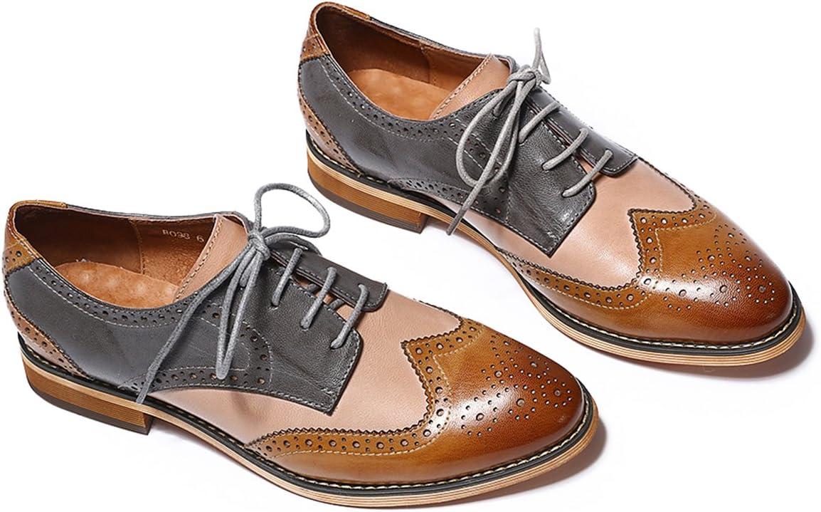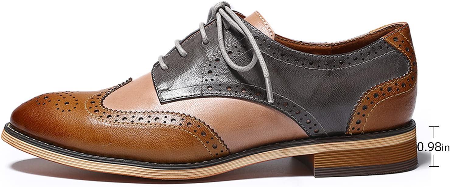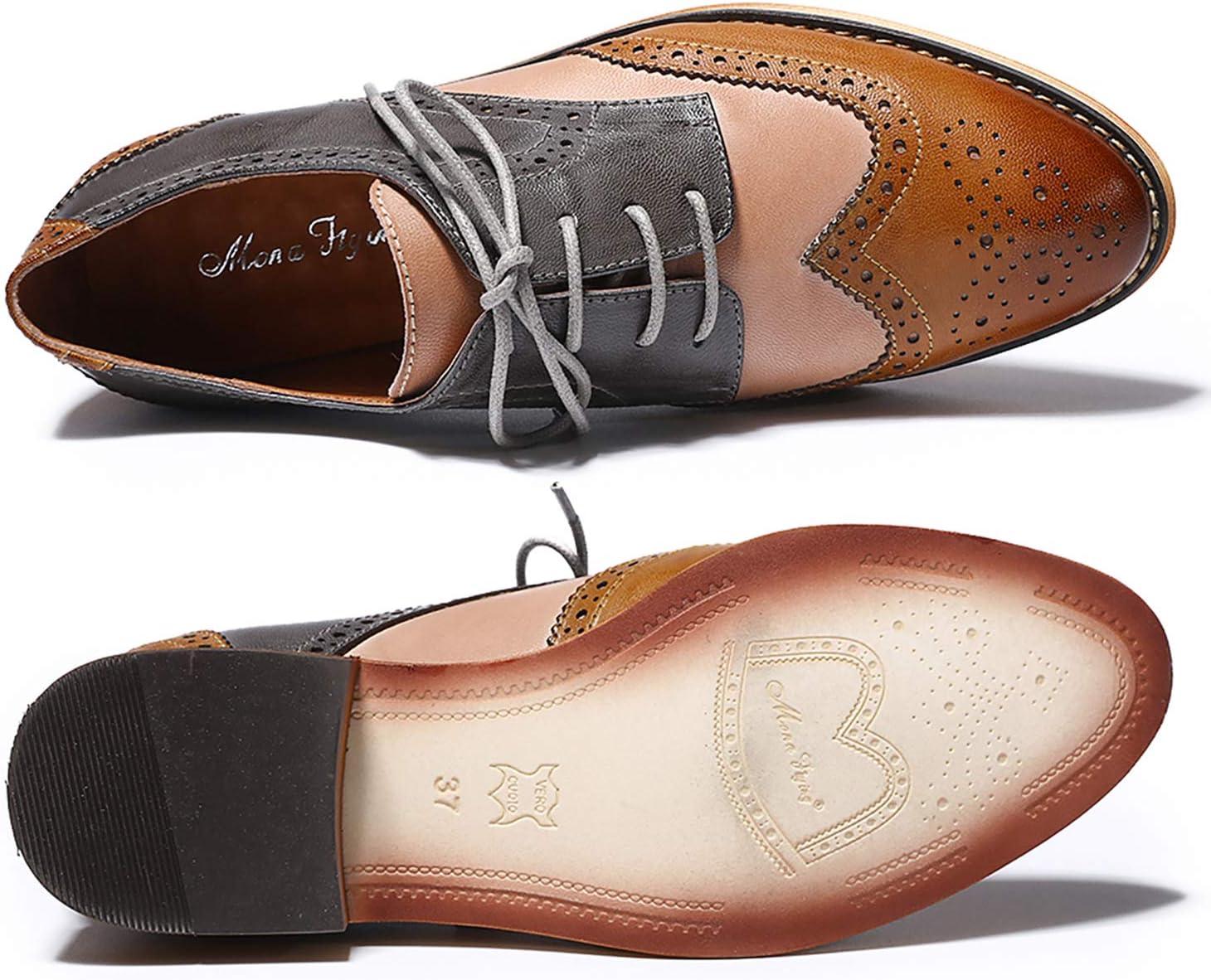 Mona flying Women’s Comfortable Multicolored Wingtip Oxfords Brogue Lace-up Leather Shoes for Womens Ladies(Brown-salmon-grey)