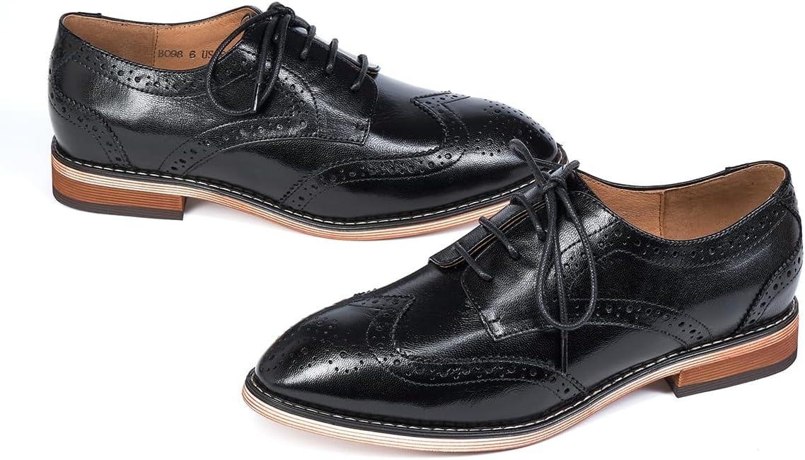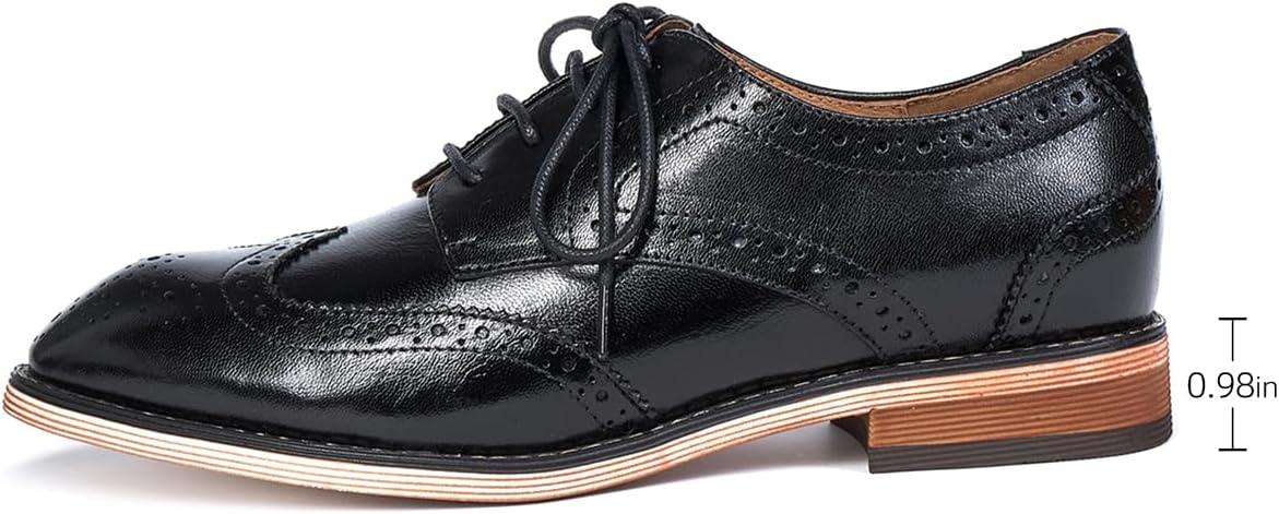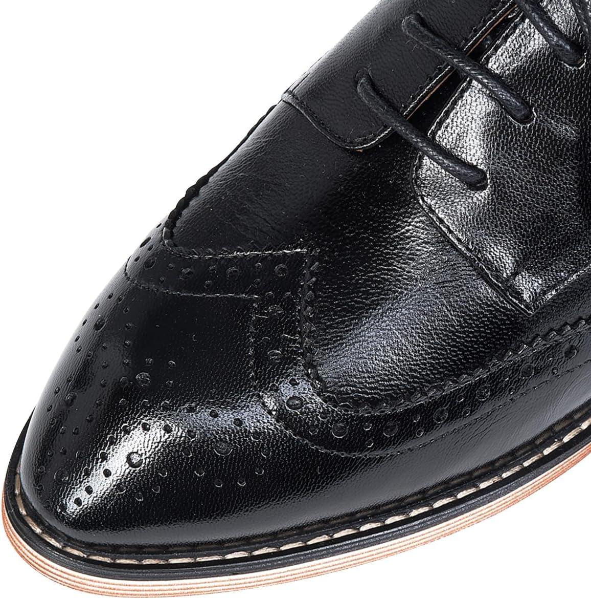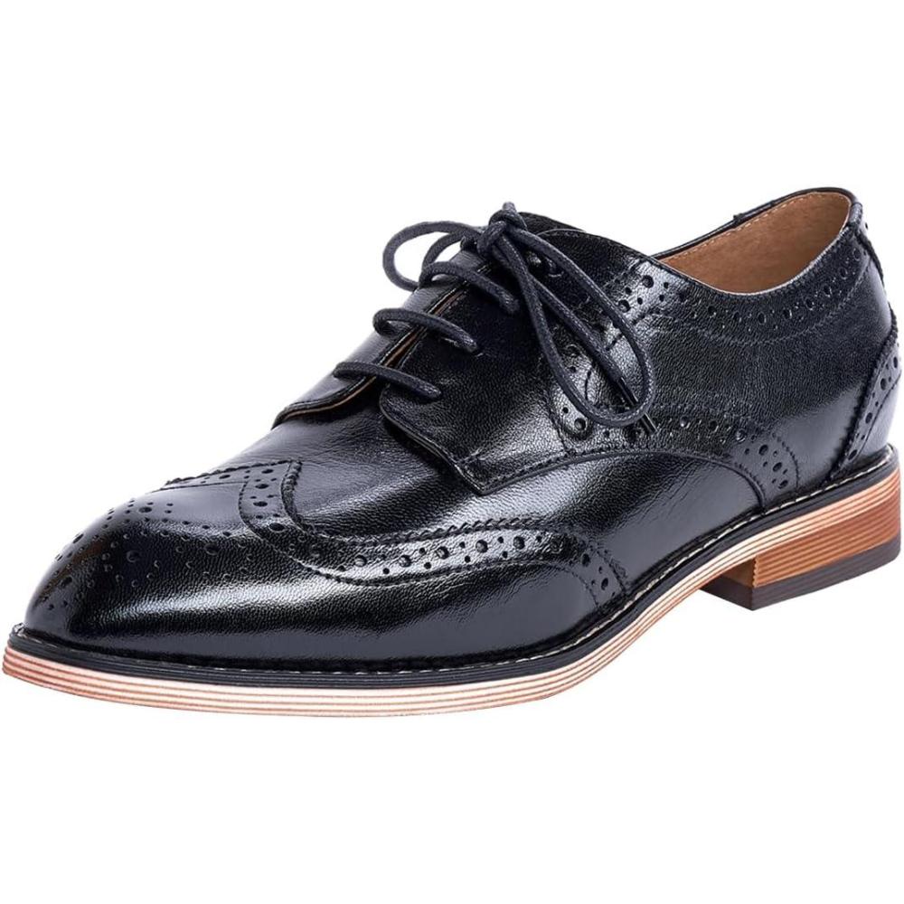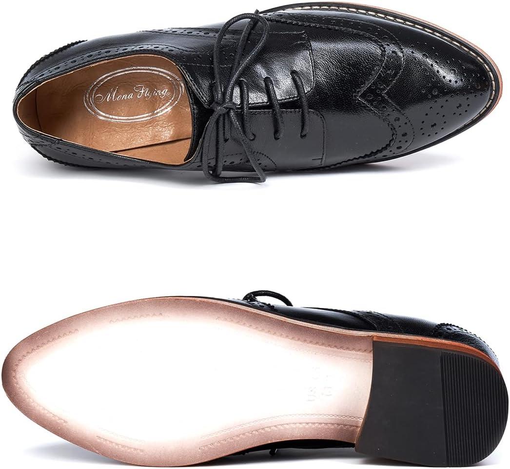 Mona flying Women’s Comfortable Multicolored Wingtip Oxfords Brogue Lace-up Leather Shoes for Womens Ladies(Deep Black)