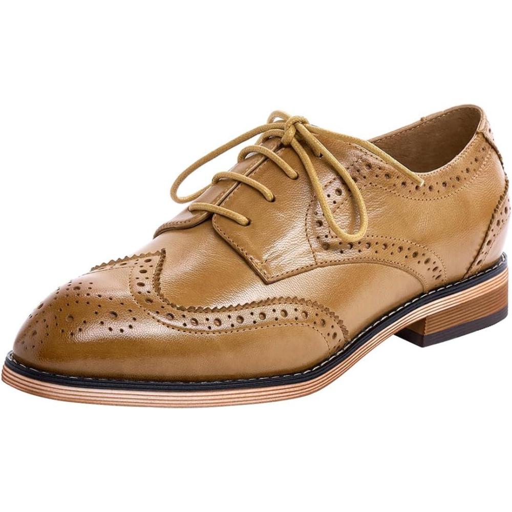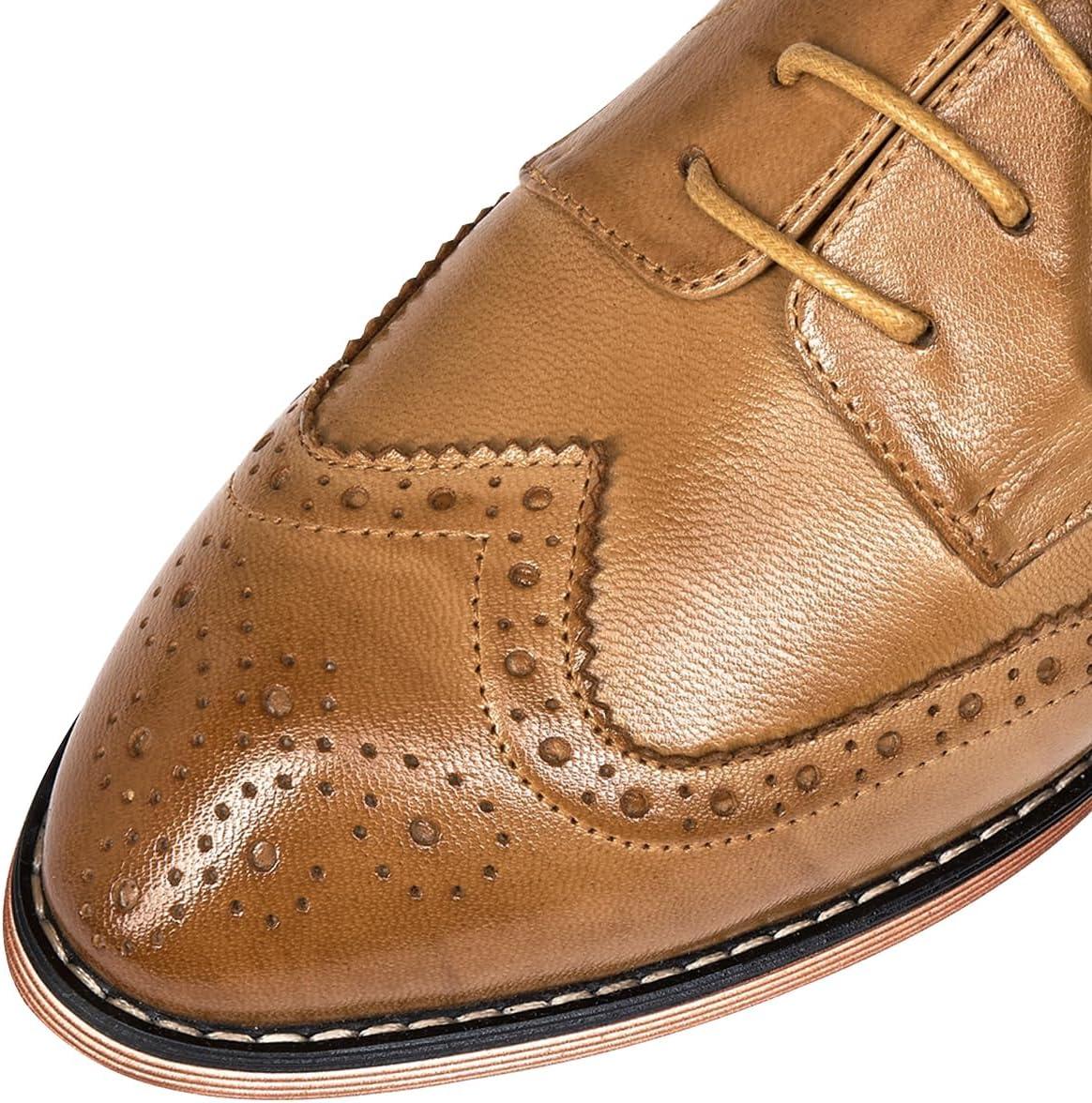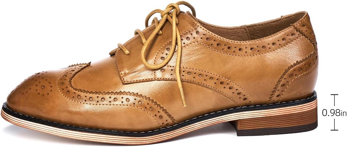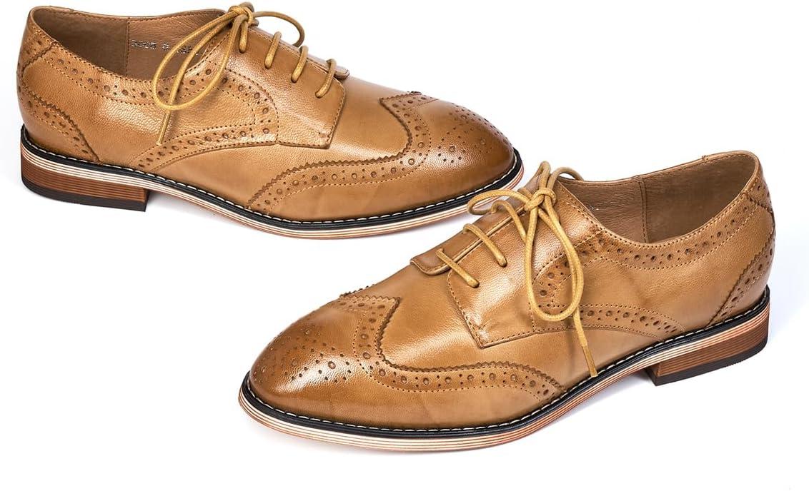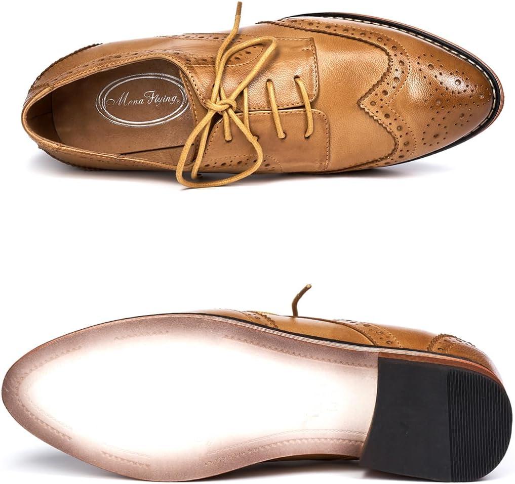 Mona flying Women’s Comfortable Multicolored Wingtip Oxfords Brogue Lace-up Leather Shoes for Womens Ladies(Nut Brown)
