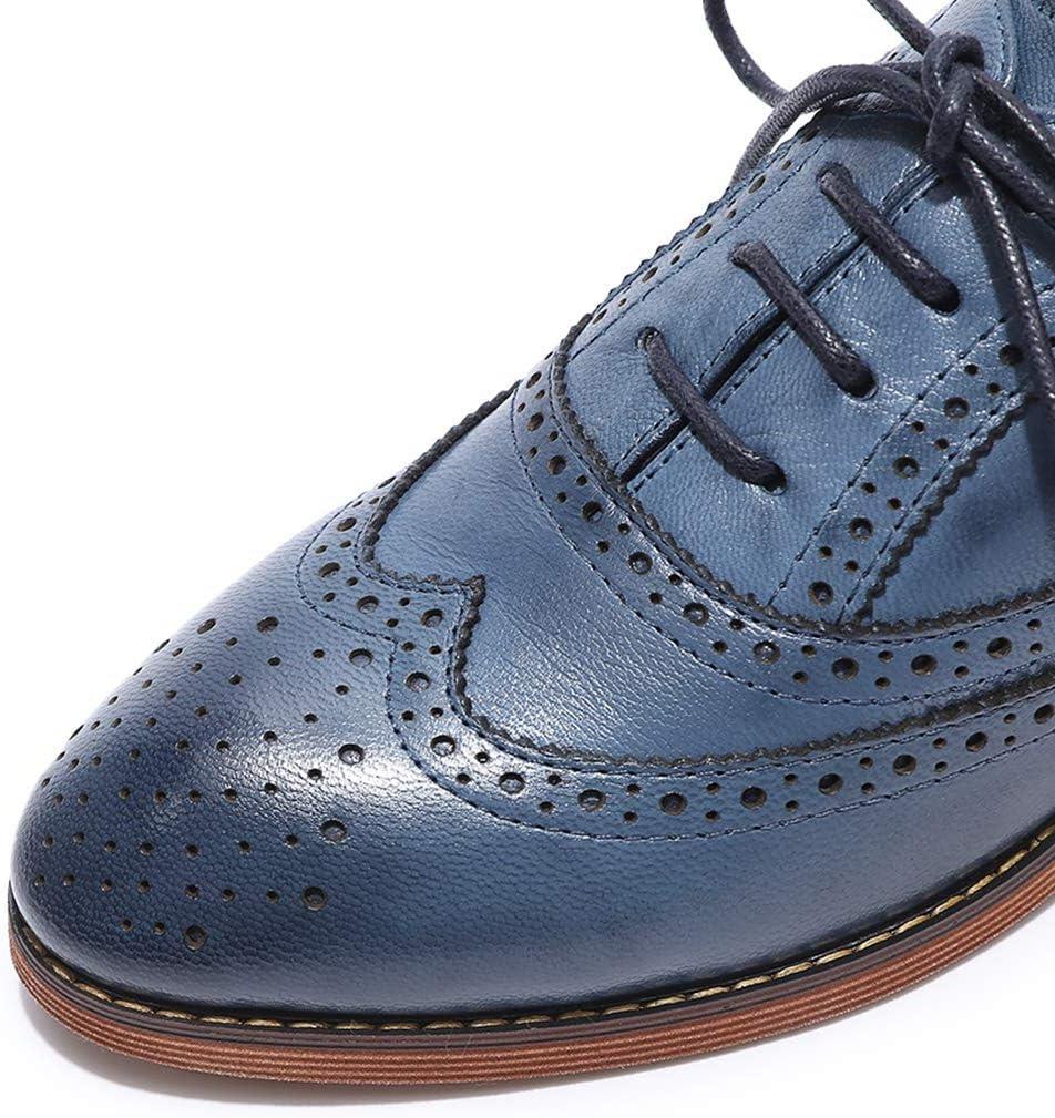 Mona flying Women’s Comfortable Wingtip Oxfords Brogue Saddle Lace-up Leather Shoes for Ladies(Blue)