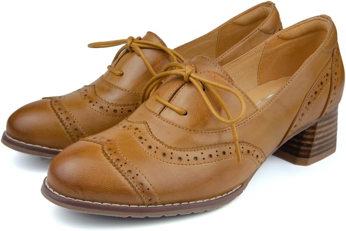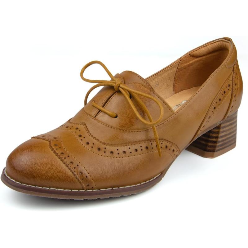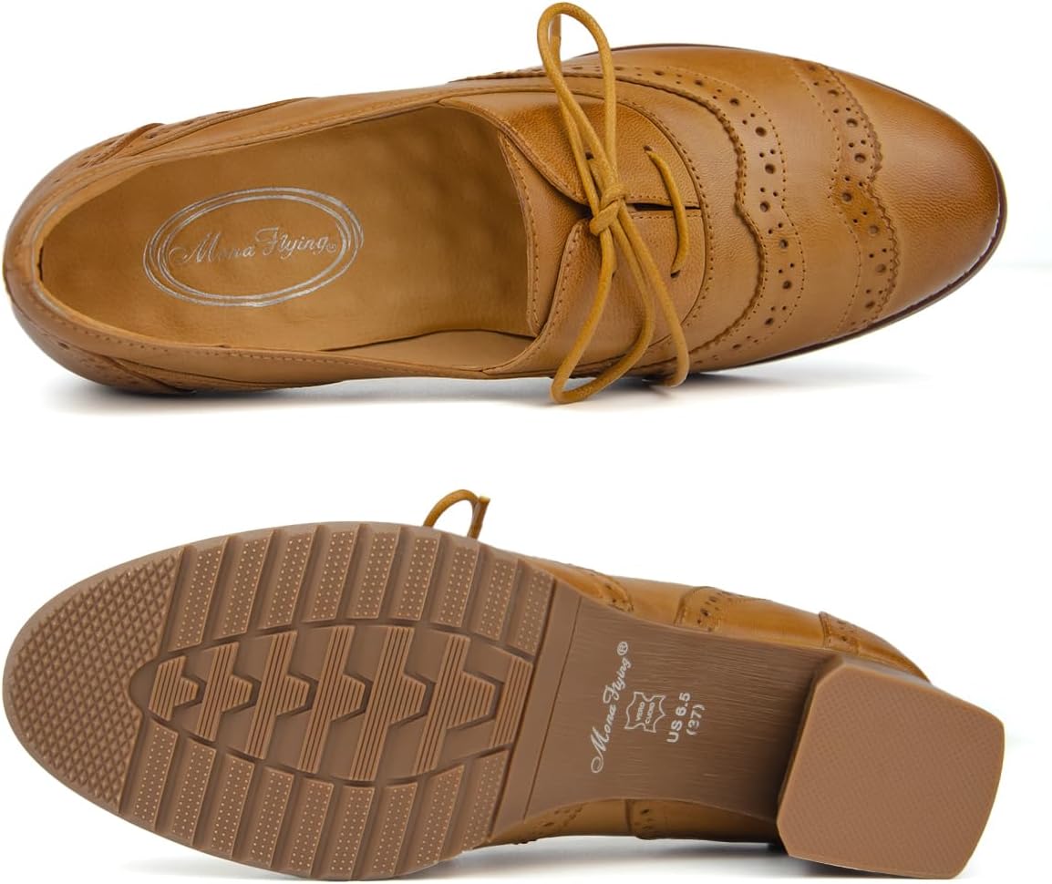 Our holiday sale features the best deals on Mona flying Womens Leather 4 cm Chunky Heel Wingtip Oxfords Brogue Lace up Dress Pumps for Ladies(Brown) and accessories. Shop now and save!