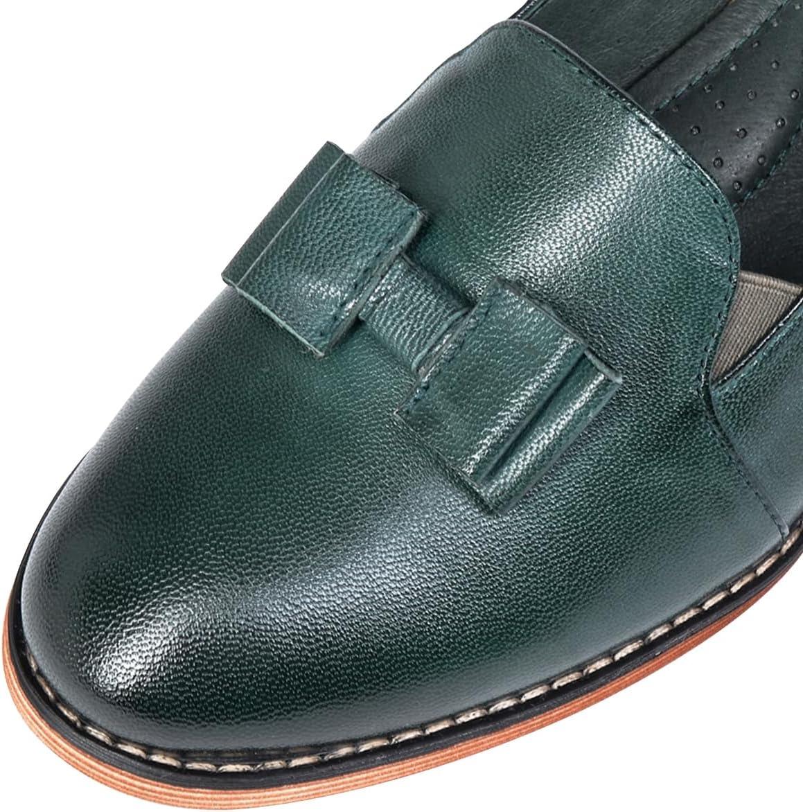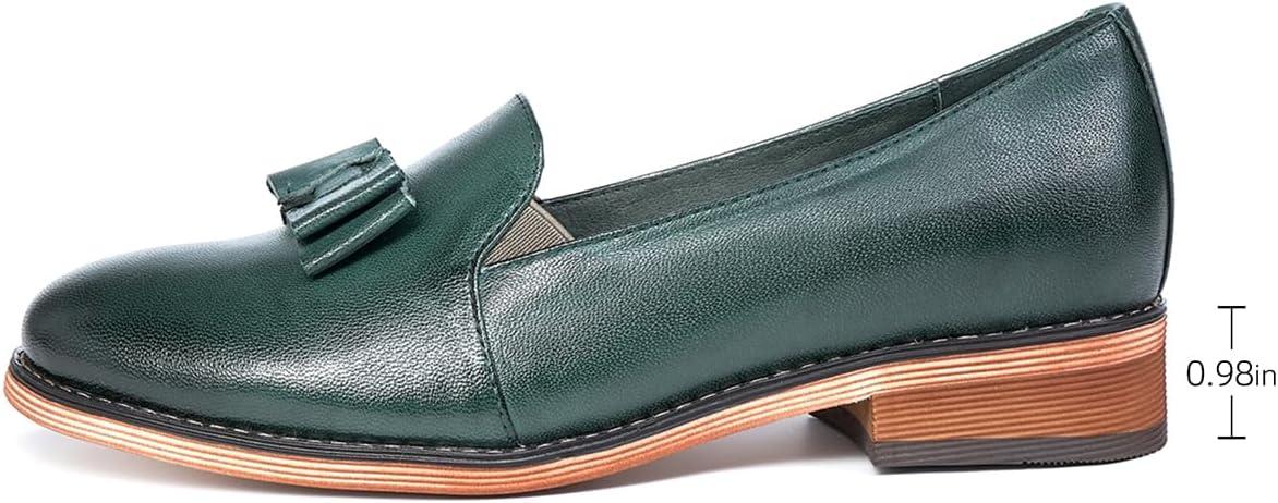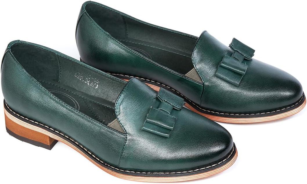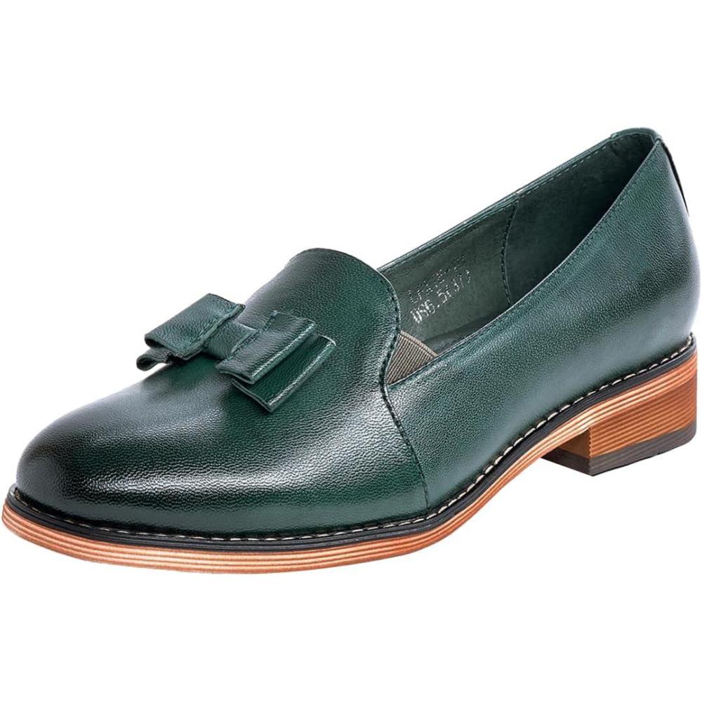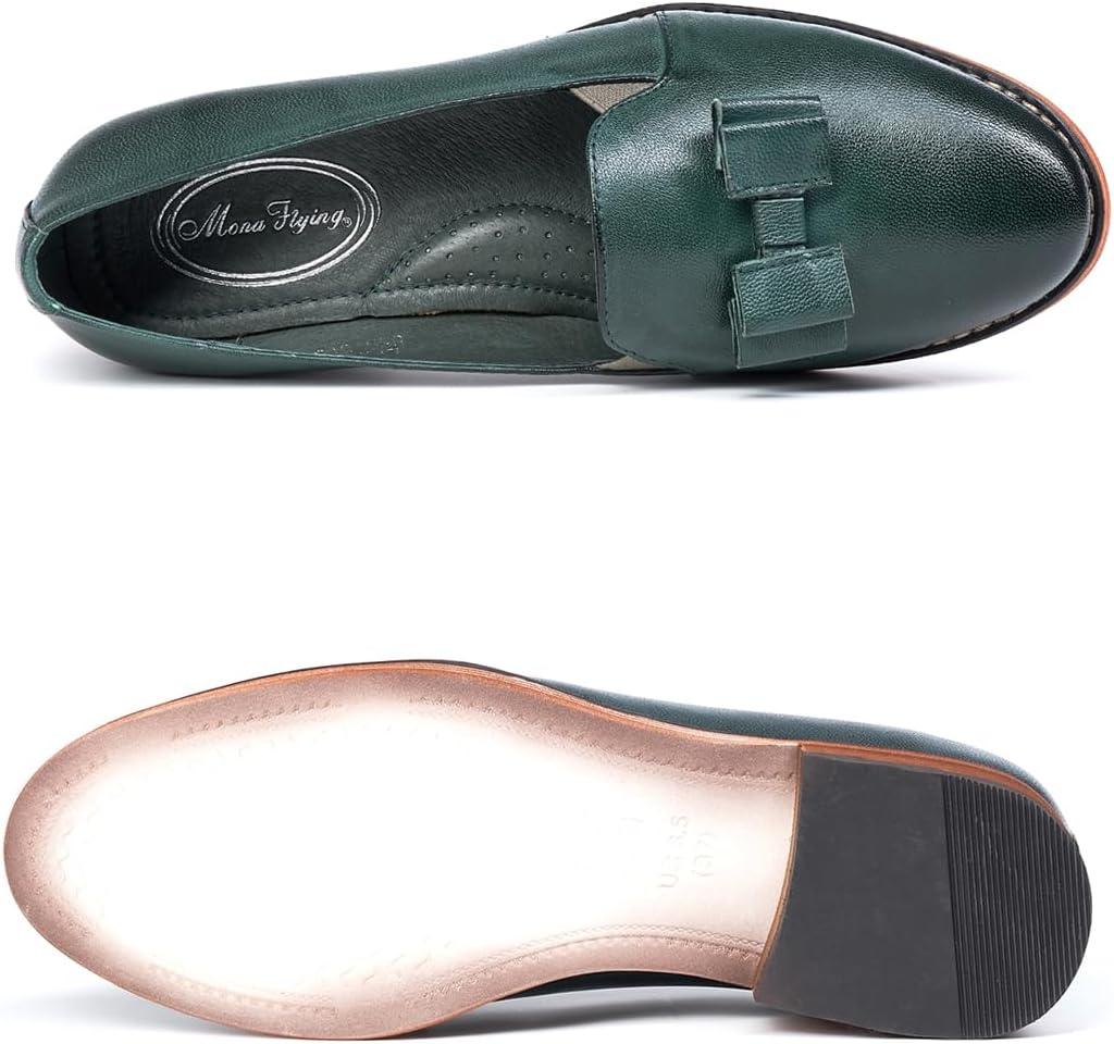 Mona flying Women’s Leather Bow Penny Loafer Business Casual Slip on Flat Office Work Shoes for Ladies(Dark Green)