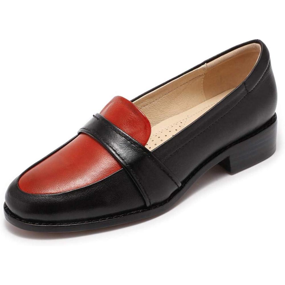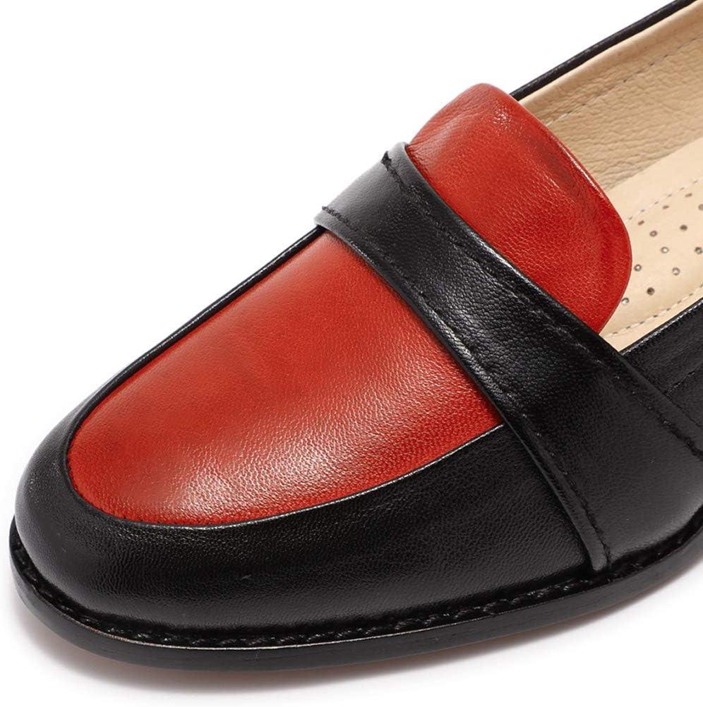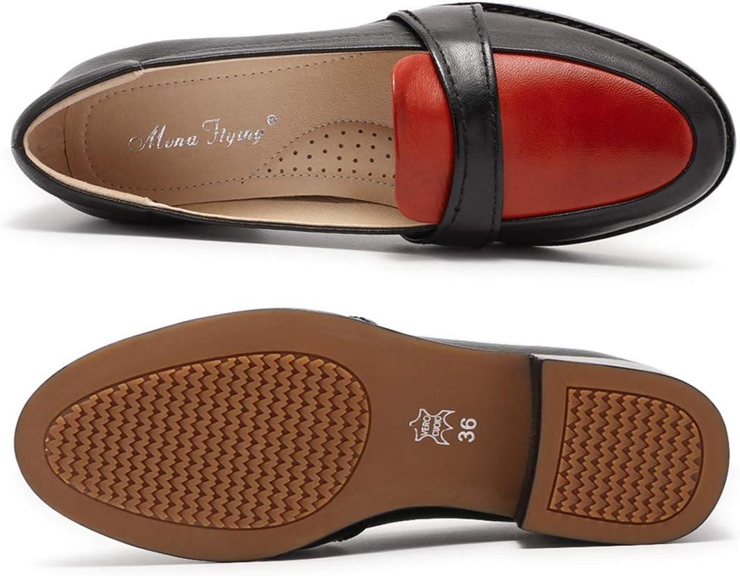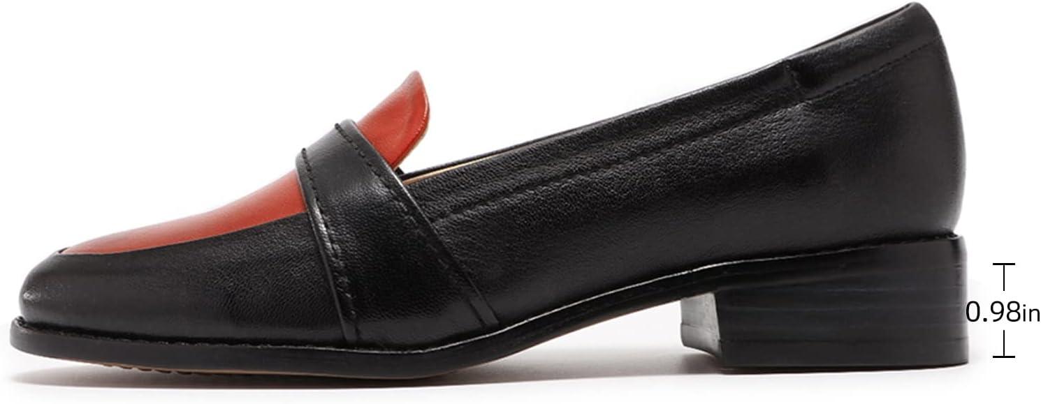 Mona flying Women’s Leather Dress Penny Loafers Slip On Flats Office Ladies Casual Shoes(Black-red)