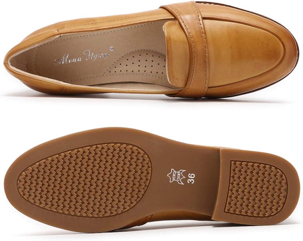 Mona flying Women’s Leather Dress Penny Loafers Slip On Flats Office Ladies Casual Shoes(Brown)