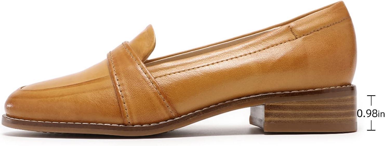 Mona flying Women’s Leather Dress Penny Loafers Slip On Flats Office Ladies Casual Shoes(Coffee)