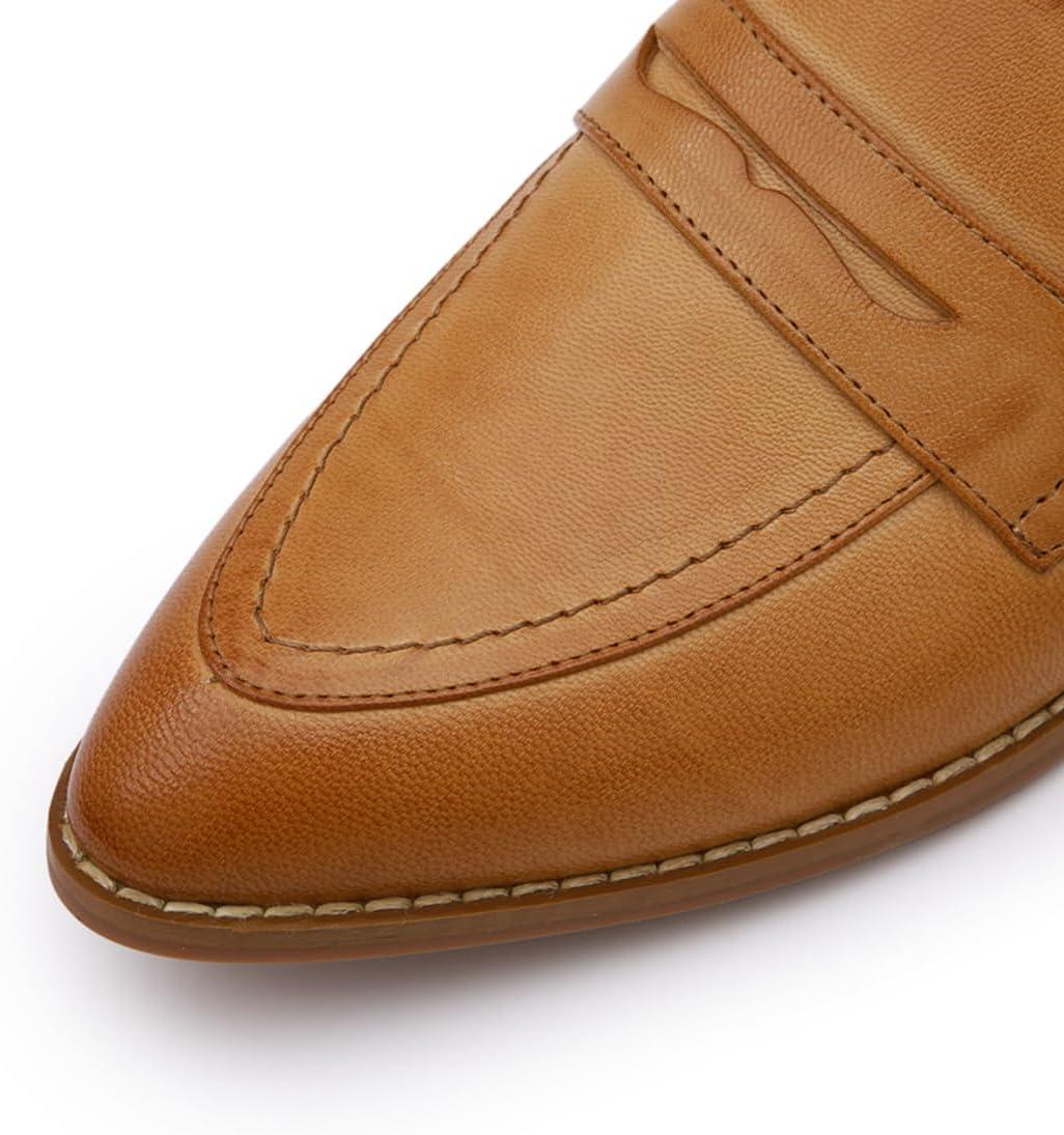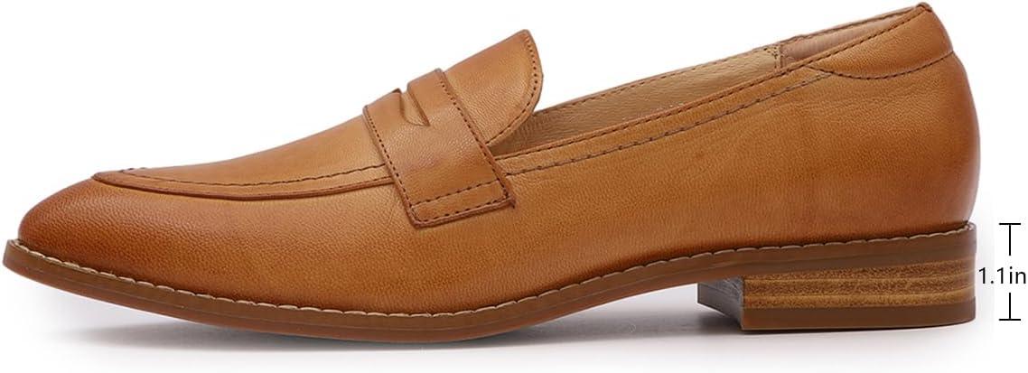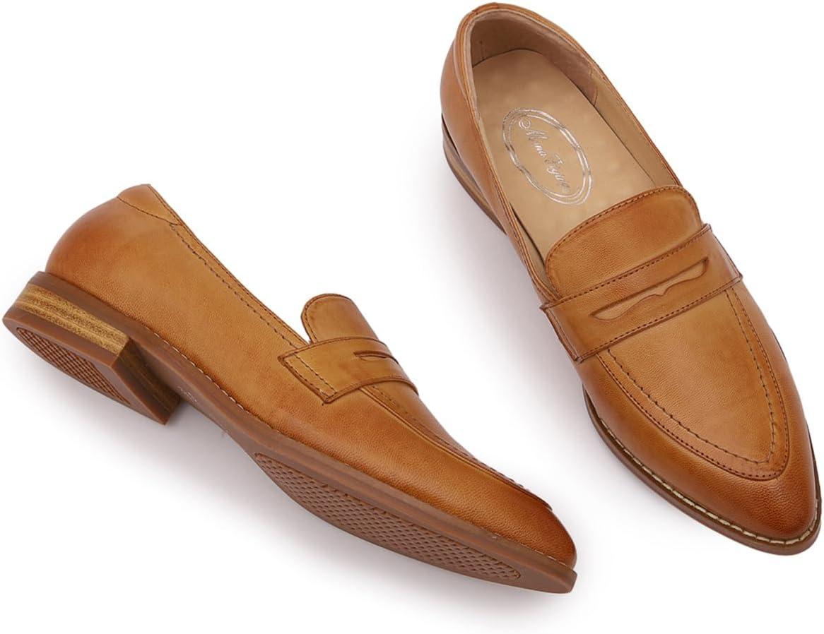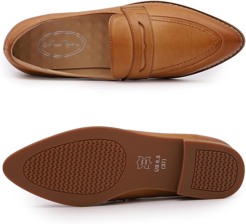 Mona flying Women’s Leather Pointed Toe Penny Loafer Dress Casual Slip on Flat Office Work Shoes for Ladies(Brown)